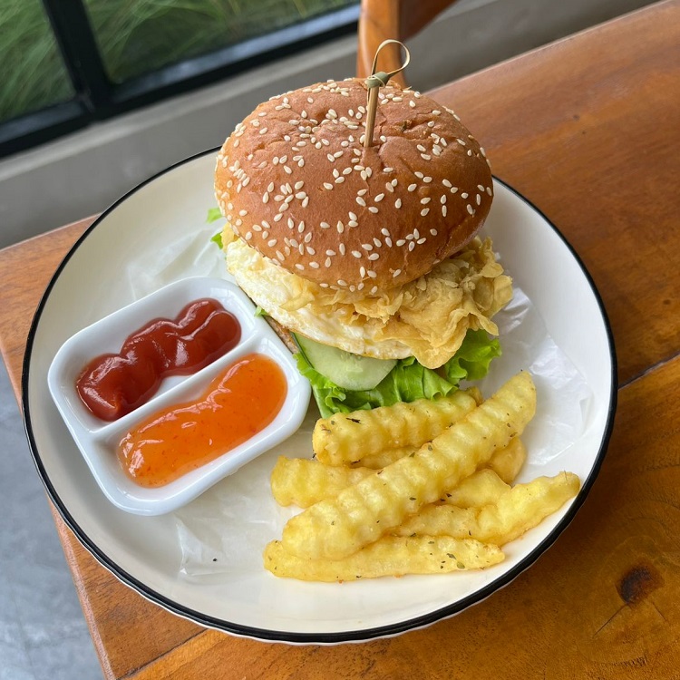 CHICKEN CRISPY,EGG FRIED DAN SAOS BURGER